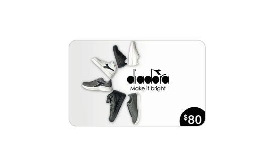 Diadora marca líder en el mercado de calzado deportivo y ropa.. Tarjeta válida para compras web exclusivamente en www.imdemoec.com las 24h del dia. Vigencia: 60 días desde la fecha de la compra. Terminos y Condiciones: Consumo por el valor total, sin devolución de diferencia si el consumo es menor al valor de la Giftcard. Permite completar el monto con otros medios de pago. La gift card no puede ser utilizada en productos con descuento. No es recargable. Cuando expire su vigencia, la gift card carecera de todo valor, no siendo posible su uso ni el reembolso. La pérdida, robo, hurto y uso no autorizado de la tarjeta, bajo cualquier circunstancia no admite orden de bloqueo o sustitución de tarjeta. *No nos responsabilizamos por el uso incorrecto de las gift cards digitales.